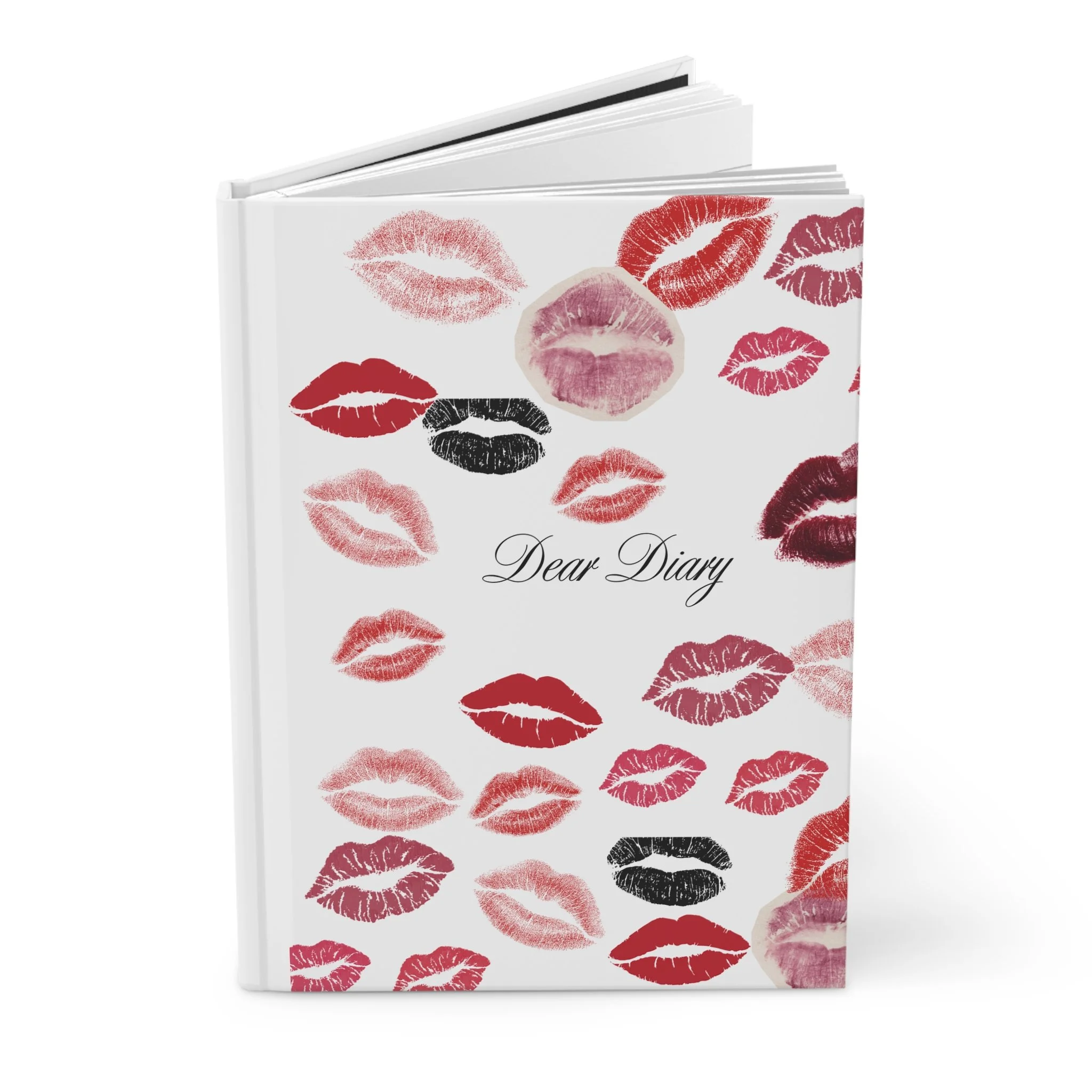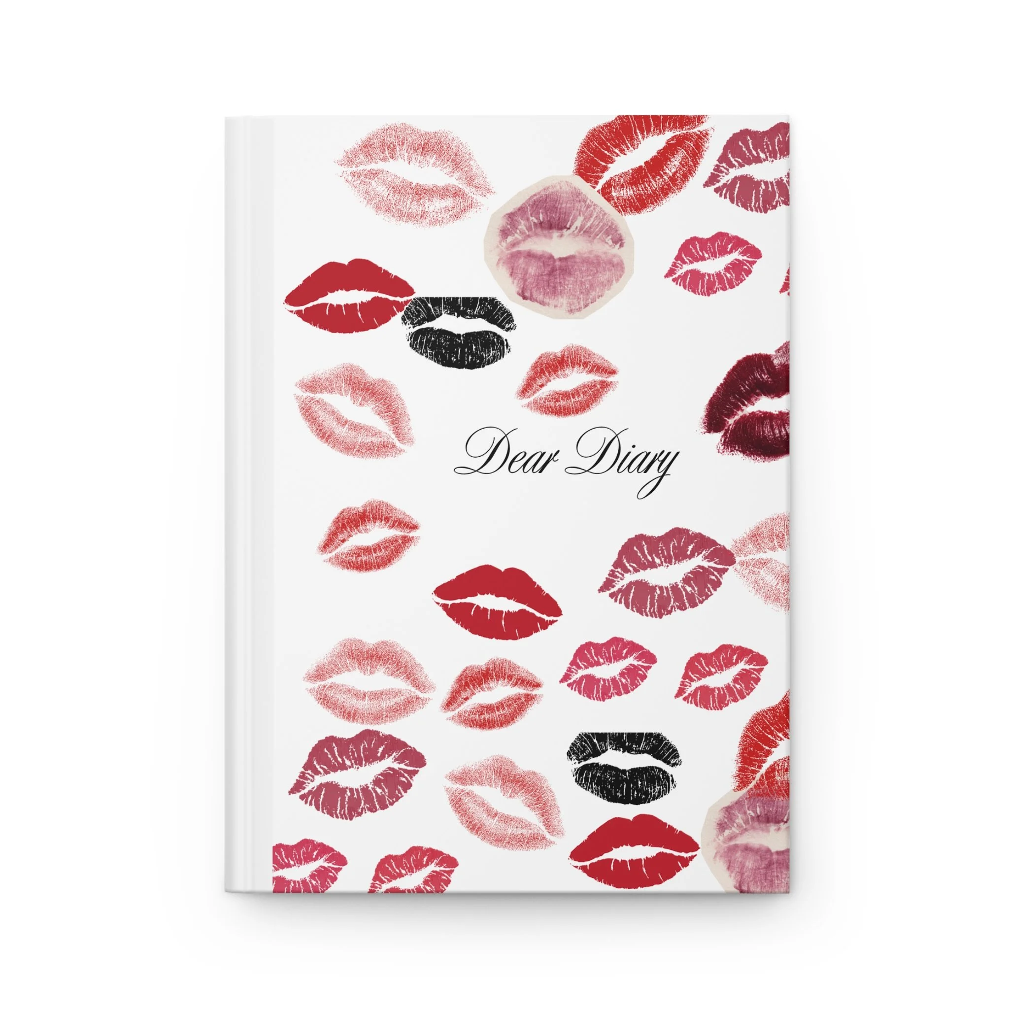 Dear Diary Kiss Print Hardcover Journal — Lipstick Kiss Pattern Notebook for Personal Writing, Gifts & Valentine's Day